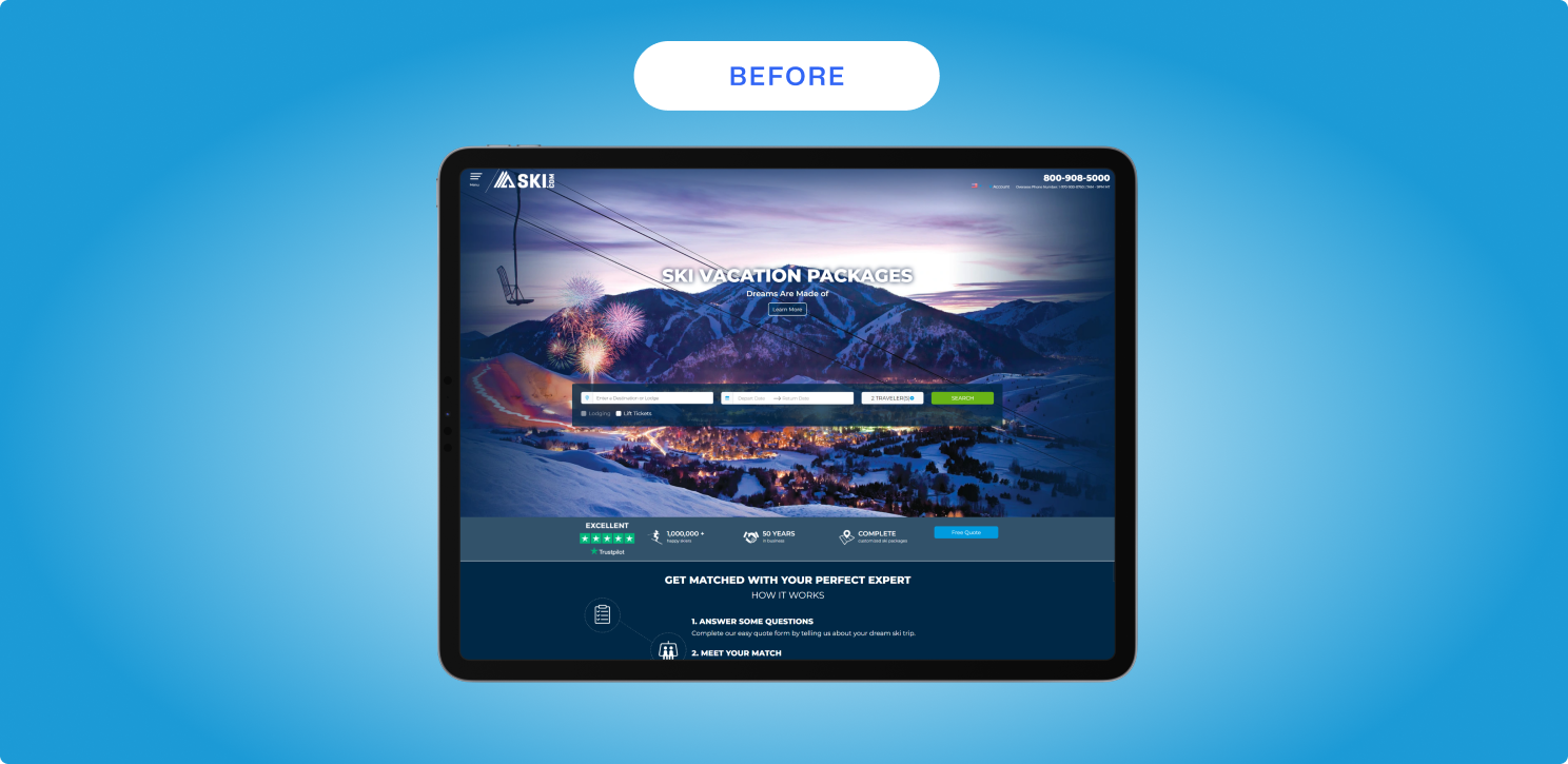 Additionally, the integration of Ski.com’s Expedia booking engine was streamlined, ensuring a seamless and efficient user journey from browsing to booking.
